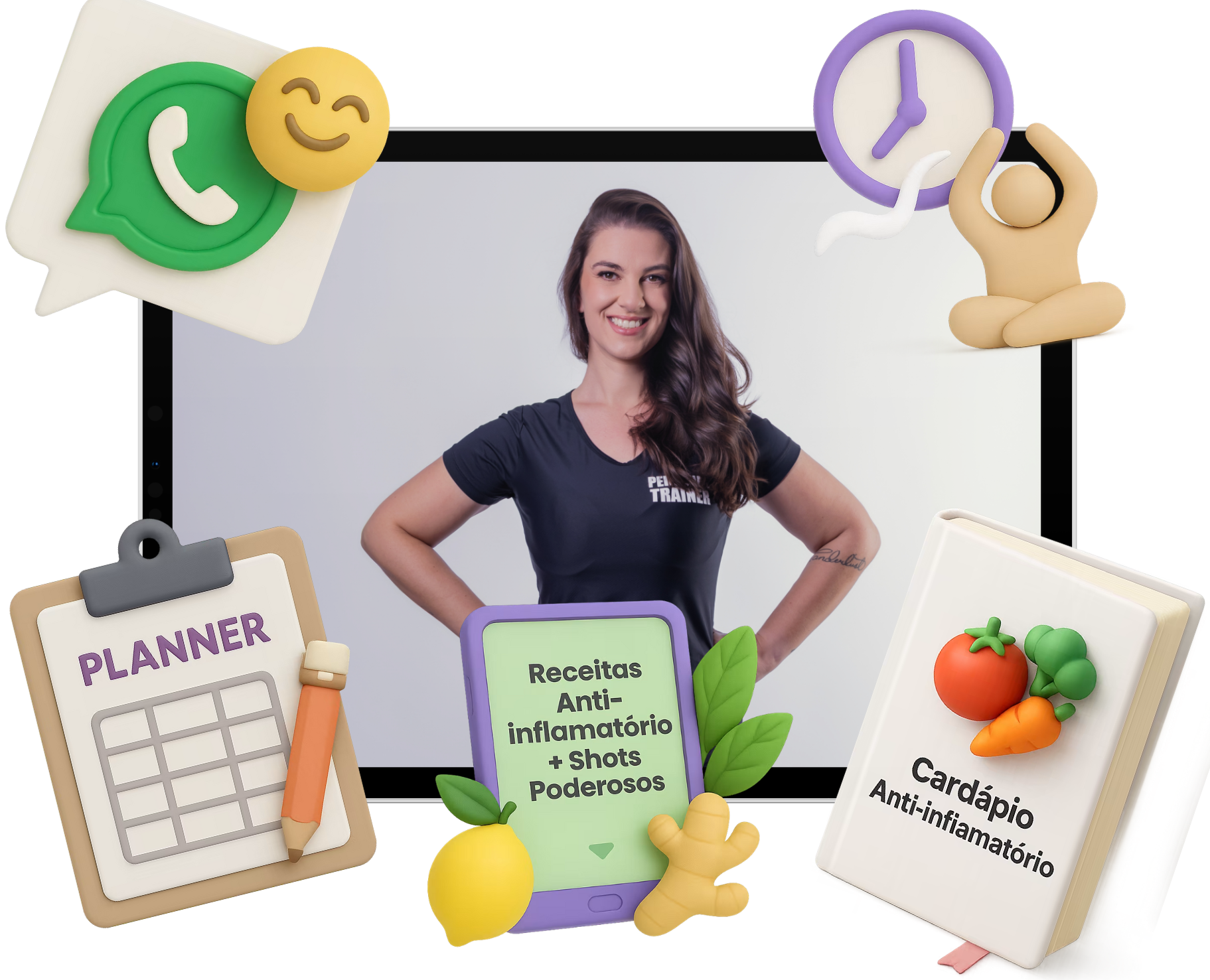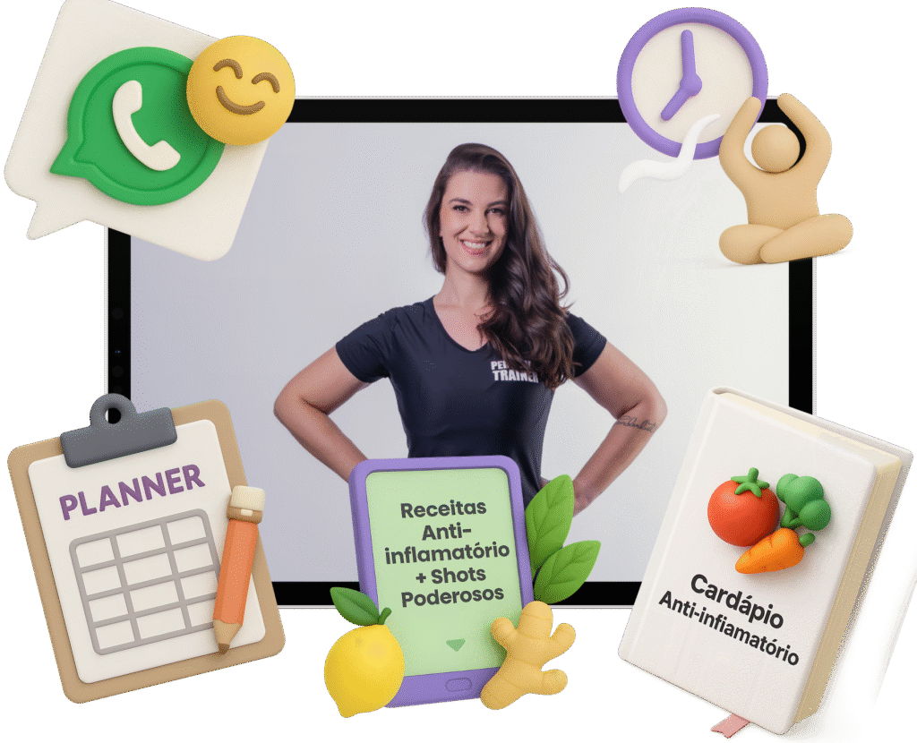 Nada de ficar perdida ou sem saber o que fazer! Com o nosso planner exclusivo, você vai organizar sua rotina diária de exercícios e alimentação, acompanhar seu progresso e ter clareza em cada passo do desafio. Assim, você mantém o foco, sente a evolução e garante que os resultados venham de forma segura e constante.